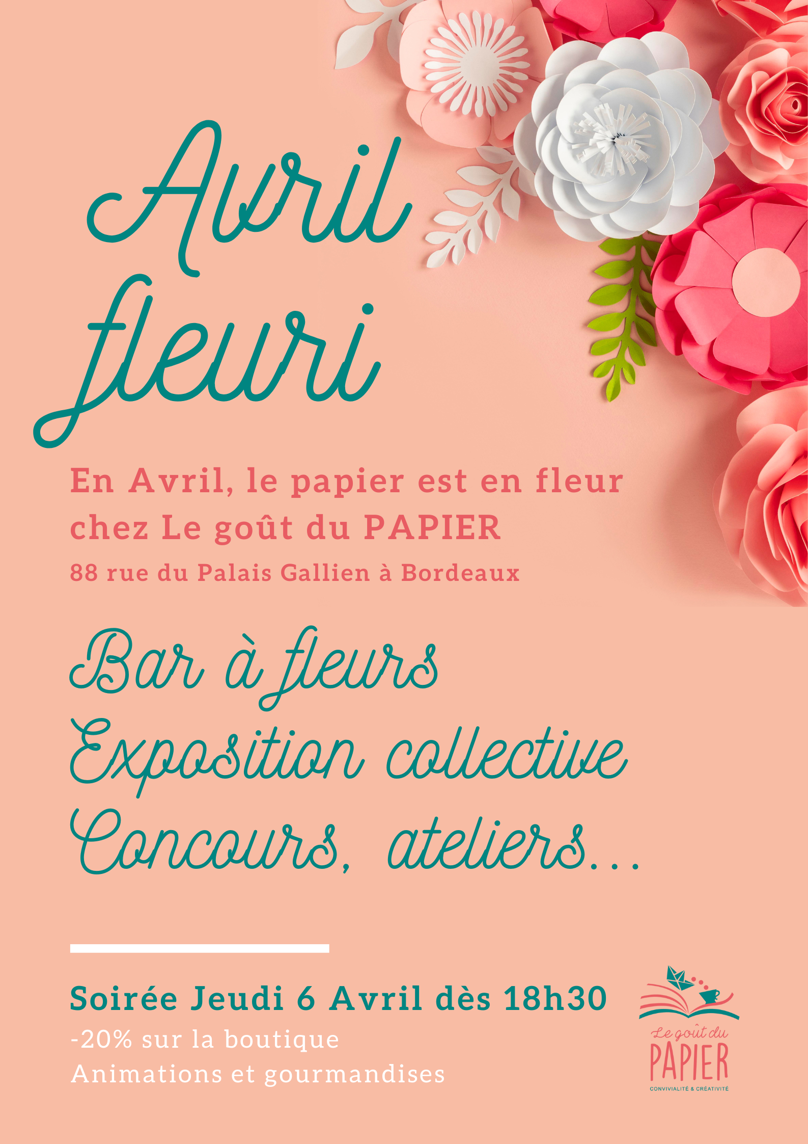 UNE EXPO COLLECTIVE sur le thème des fleurs (artistes et artisans professionnels travaillant le papier). Les oeuvres seront mises en vente.