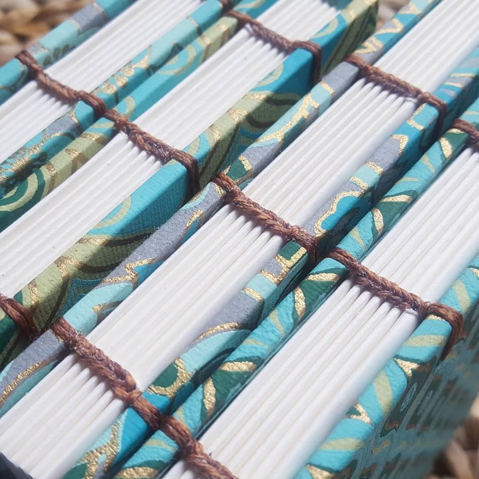 J’ai toujours aimé écrire et gribouiller. J’adorais l’école, j’adorais mes cahiers, je m’appliquais énormément pour les remplir. Et plus tard j’ai commencé à collectionner les carnets, pour y inscrire mes idées, puis pour y dessiner, ou encore juste parce qu’ils étaient jolis. Quand j’ai rédigé mon Mémoire de fin d’études en Design Graphique, j’ai décidé de le relier à la main, une grande première. Après des nuits entières à coudre au fil, je me suis dit « plus jamais !! ». Résultat des courses, je passe mes journées à relier des carnets à présent, et j’adore ça !