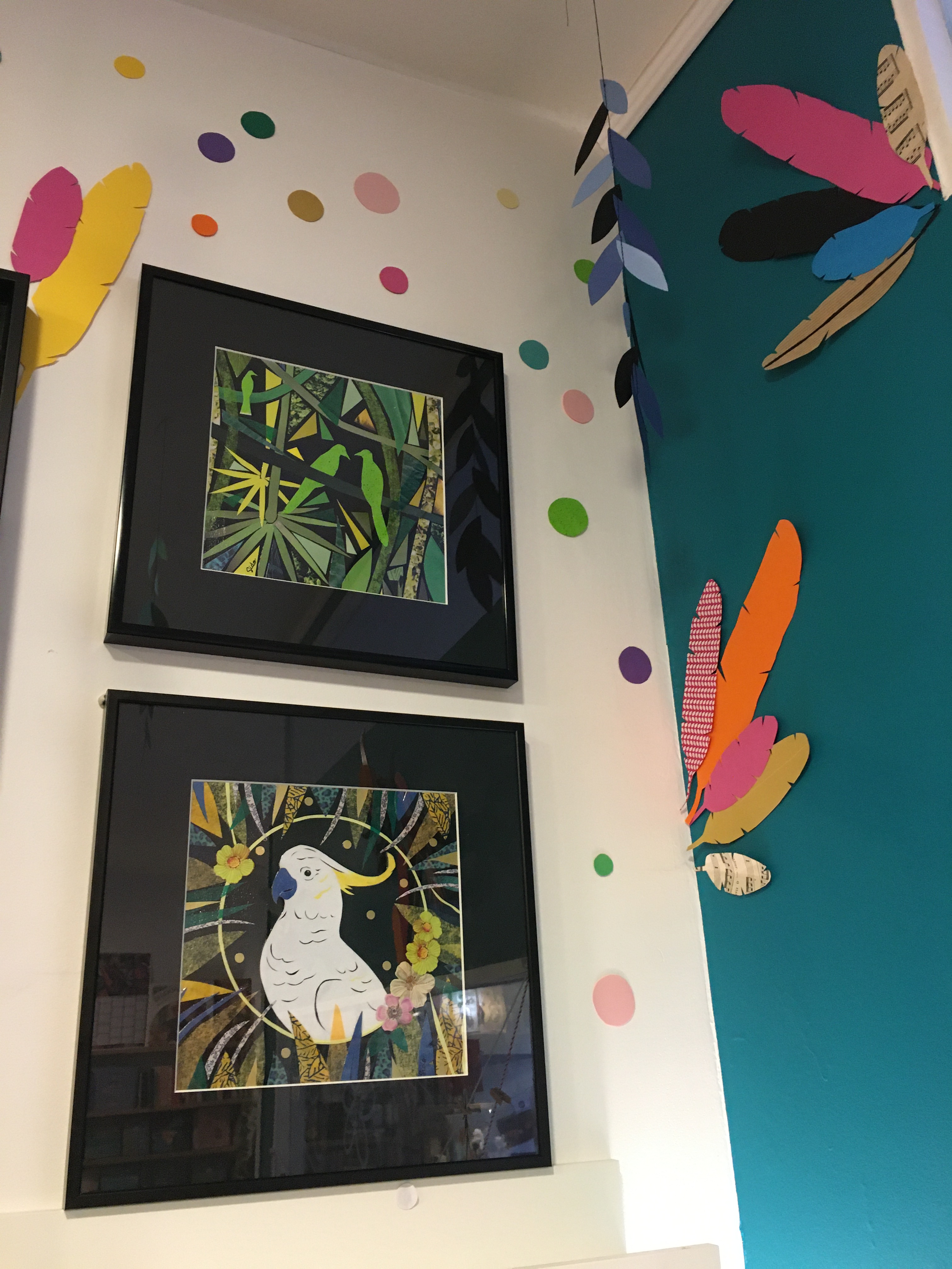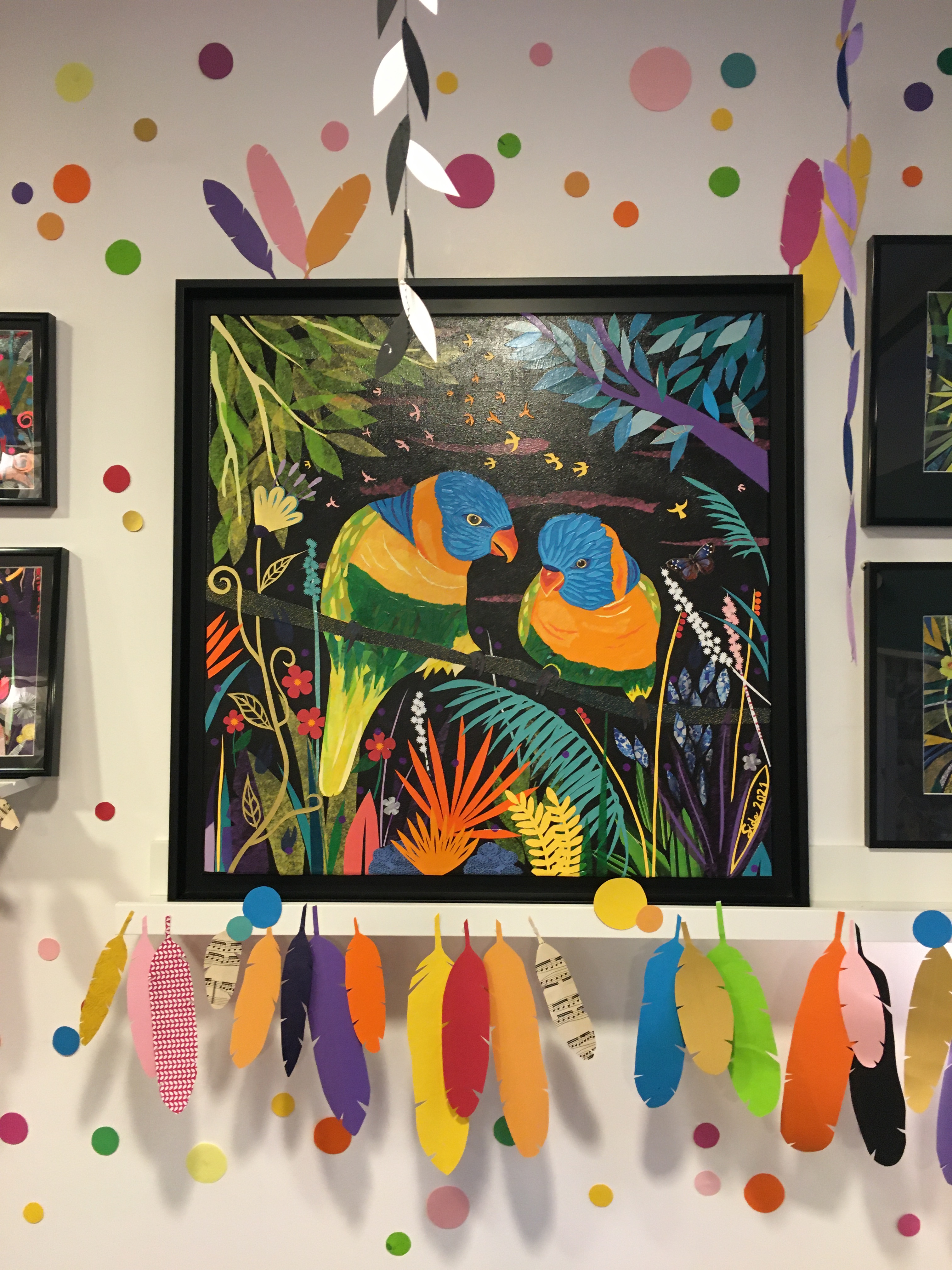 J’ai principalement 2 styles : les jungles composées de découpages très spontanés et les tableaux fragmentés plus