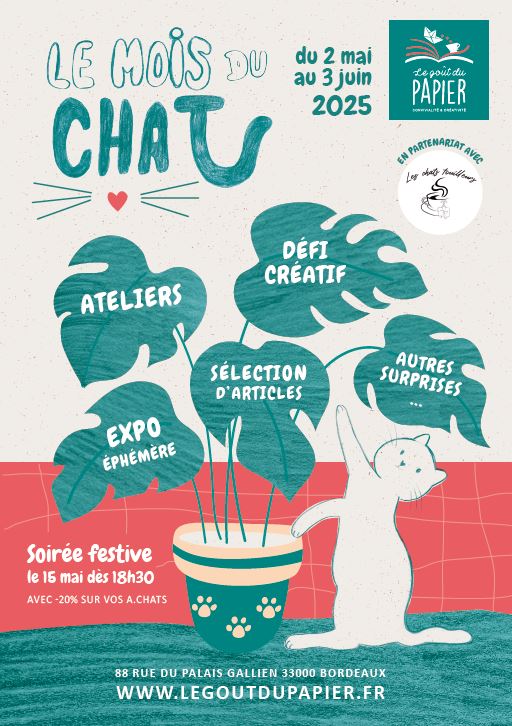 À tous les amoureux des chats et de la créativité, à force de nous faire les yeux doux et de miauler à notre porte, nous avons cédé ! Notre concept store dédié au Papier vous réserve un mois de Mai félin et inspirant ! » Un évènement sur les chats… chat alors, chat fait plaisir ! »
