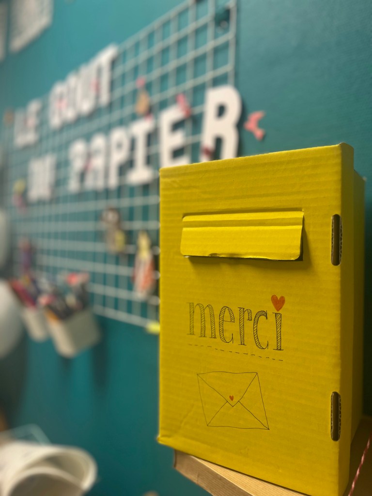 On espère que ça vous donnera envie de faire pétiller les boîtes aux lettres de vos proches en leur envoyant du joli courrier. Et puis le hasard a bien fait les choses en plaçant une boîte aux lettes de La Poste juste en face de la boutique … et nous, on ne croit pas aux coïncidences 😉