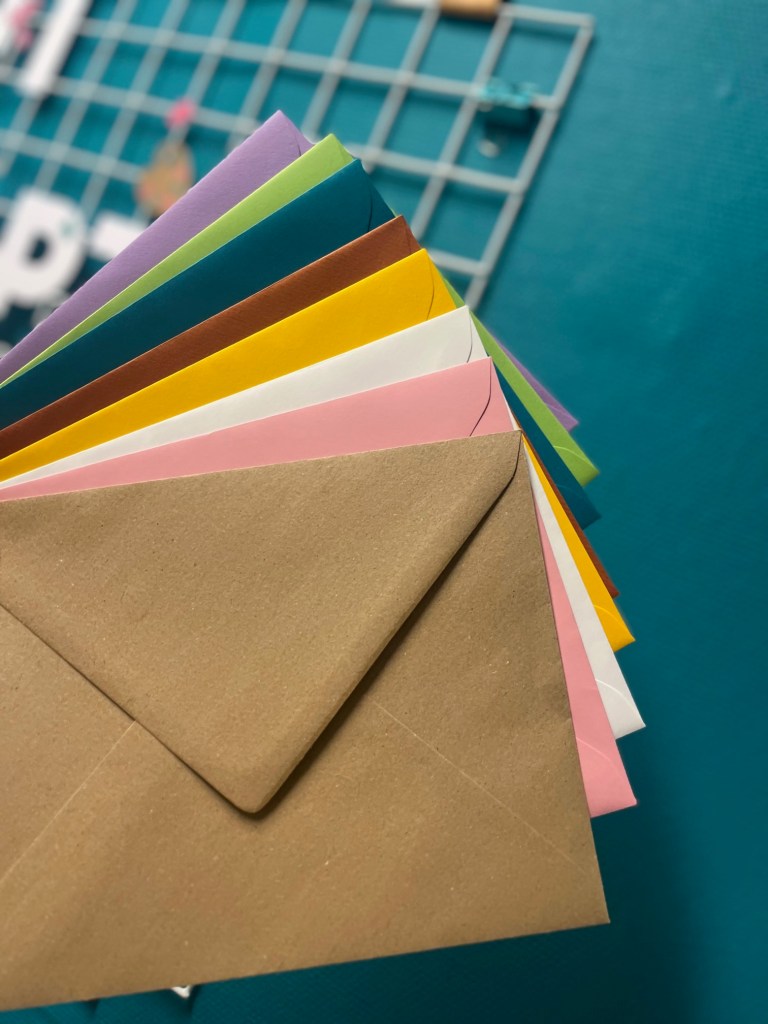 1 / Vous décorez une enveloppe à votre goût, avec du masking tape, des stickers, des tampons, du dessin, des papiers collés… tout ce qui vous plaira parmi ce que vous trouverez dans notre corbeille créative à disposition !