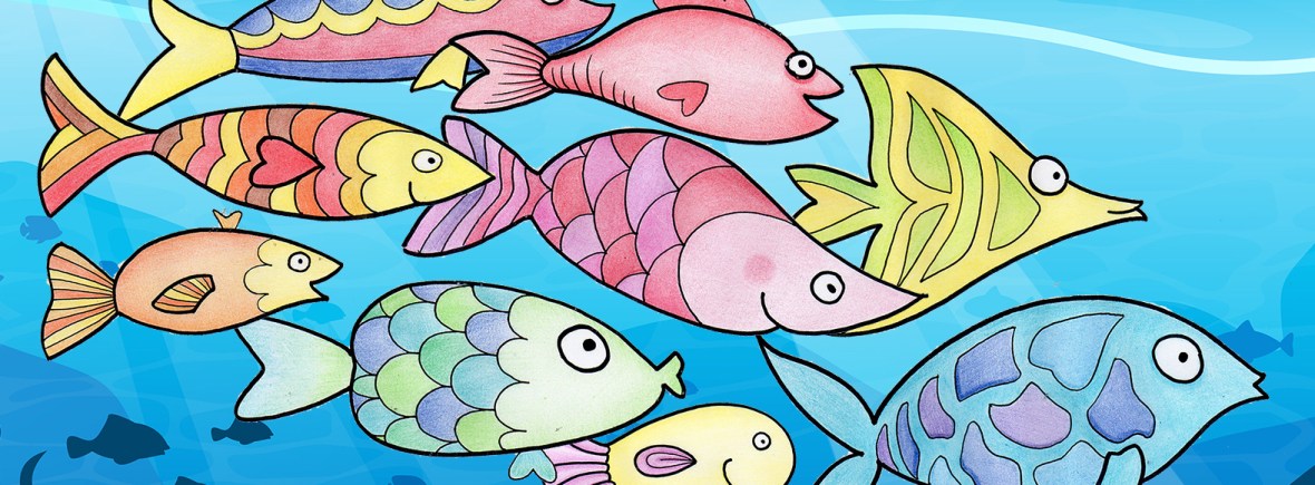 Et voici une version déjà en couleur, si tu veux imprimer des poissons tout prêt à découper :